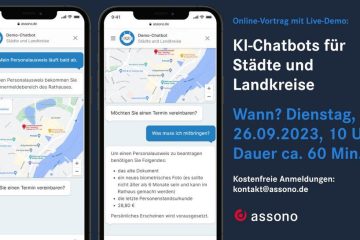 Am 8. Feruar 2024 um 10 Uhr haben wir einen Online-Austausch zum Thema „Nutzen von KI-Chatbots für Smart Cities“ geplant. In dem kostenlosen Zoom-Meeting sprechen unsere Chatbot-Experten mit Ihnen über die Vorteile eines KI-Chatbots für Weiterlesen…